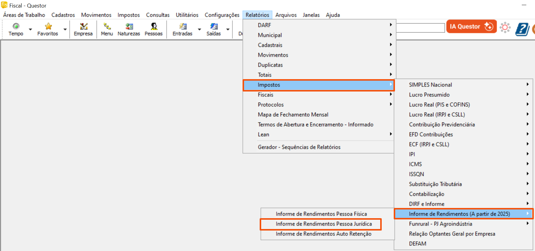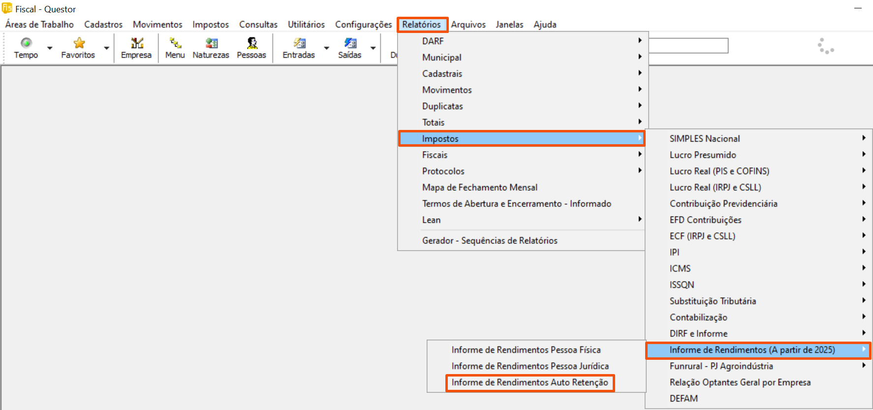 Estão disponíveis as rotinas para geração do Informe de Rendimentos Pessoa Física, Pessoa Jurídica e Auto-Retenção, válidas para o ano-calendário 2025 e posteriores.