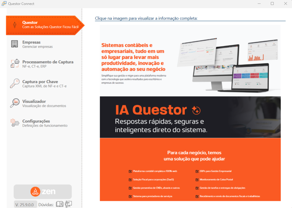 O aplicativo também oferece integração com o módulo Q-Drive do Questor Zen, otimizando o processo de importação para o Questor Gestão Contábil.