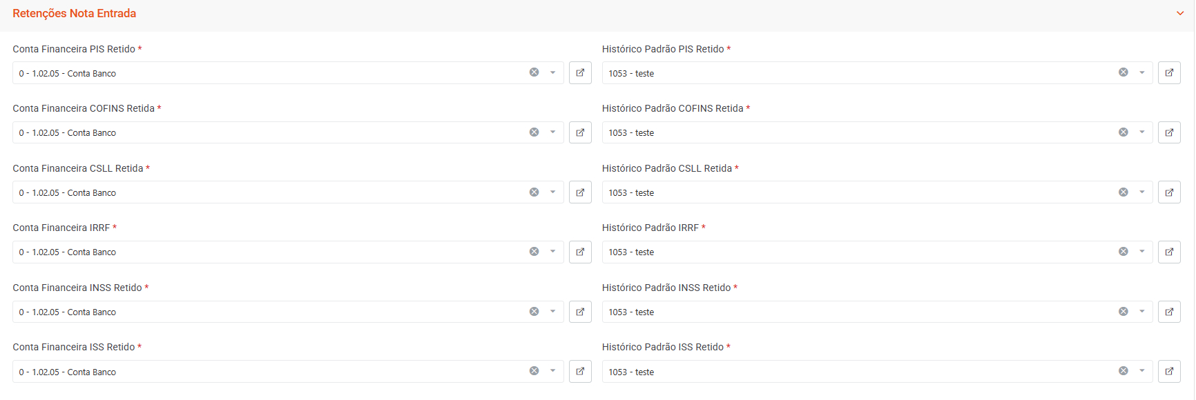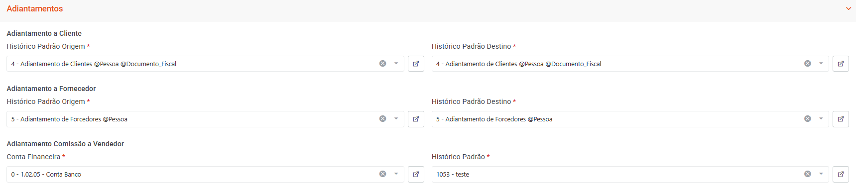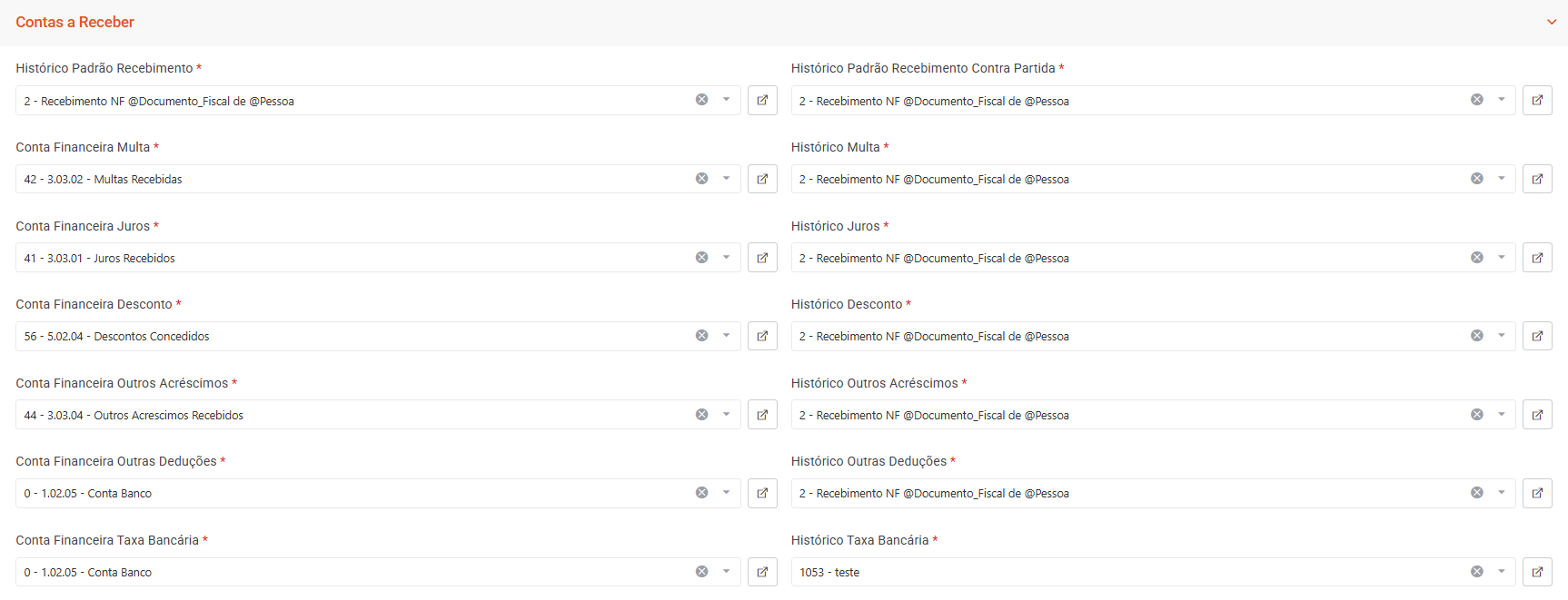 Essas configurações são essenciais para garantir padronização, agilidade nos lançamentos e integração correta com o financeiro e a contabilidade, assegurando que os registros sejam gerados de forma automática e consistente.