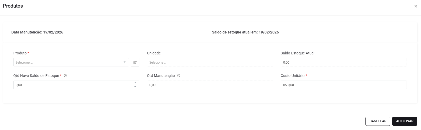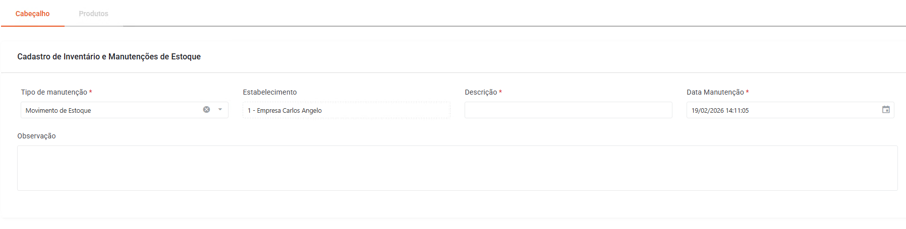 Preencha os dados dos produtos que deseja realizar a movimentação.