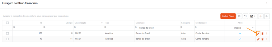 Serão listadas todas as contas, identifique a conta que deseja fazer a vinculação e clique em “Editar”.