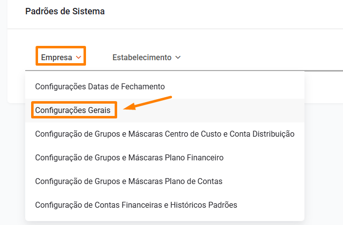 2° Passo - No menu lateral, acesse: Empresa > Configurações Gerais.