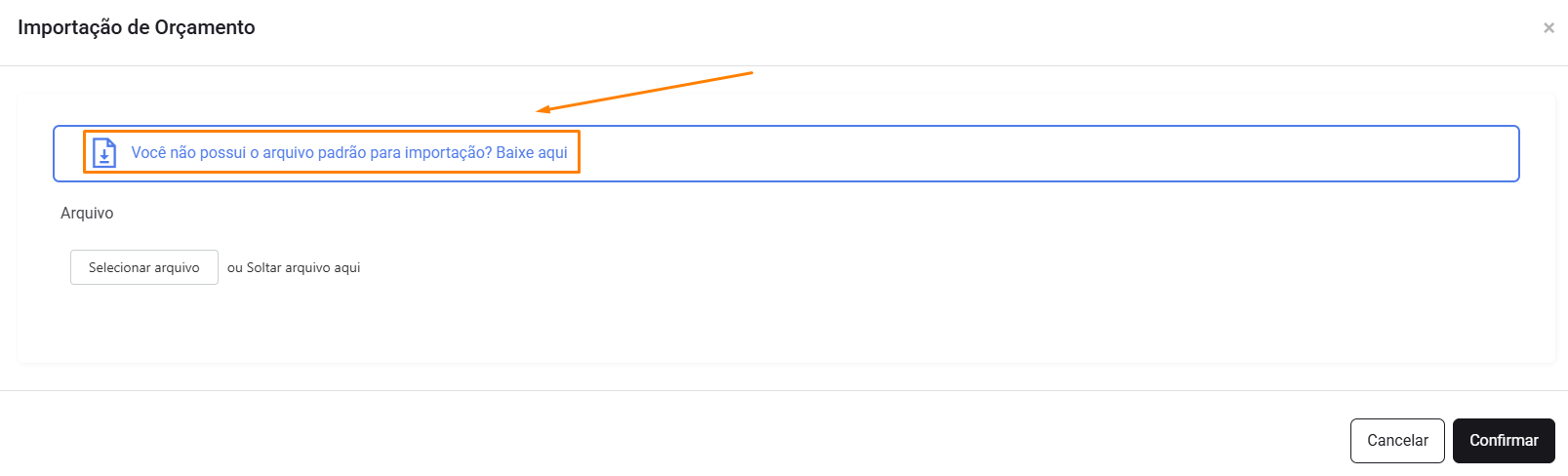 Primeiro baixe o "Arquivo Padrão de Importação", para fazer o preenchimento.