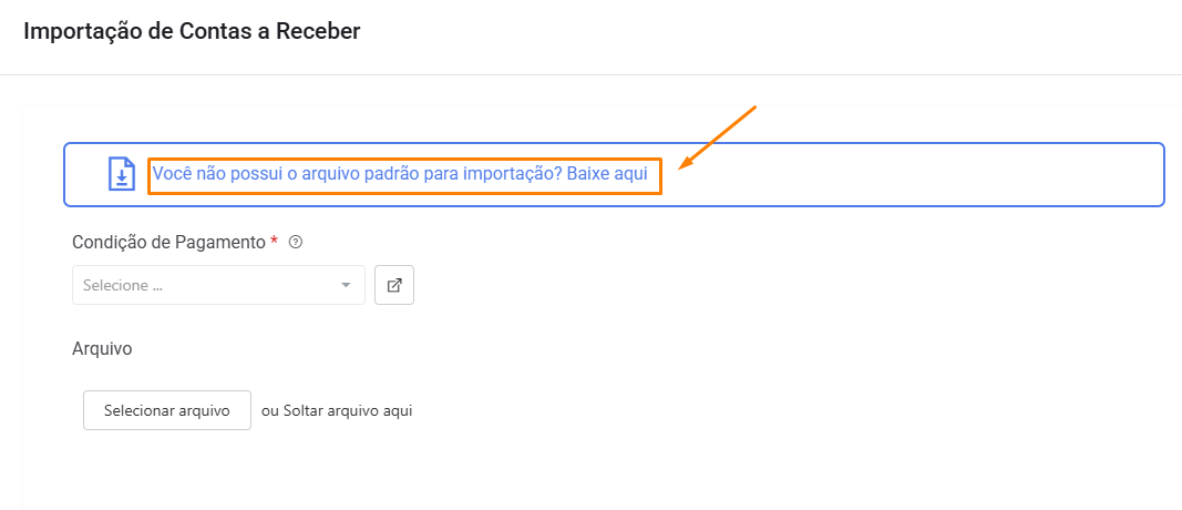 Primeiro baixe o "Arquivo Padrão de Importação", para fazer o preenchimento.