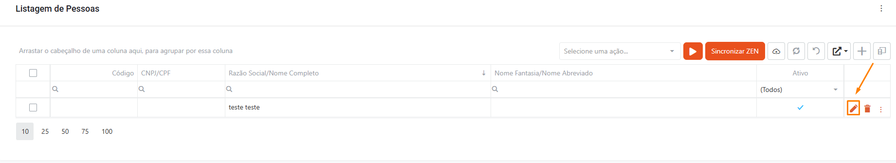 Localize o cadastro da pessoa que deseja configurar o vencimento e clique no ícone “Editar”.