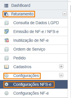 Acesse o caminho no sistema: Faturamento > Configurações > Configurações NFS-e.