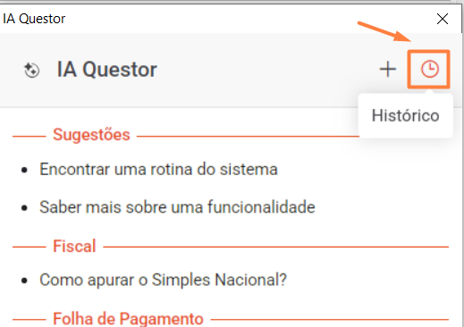 No cabeçalho da página, localize o ícone “IA Questor”.