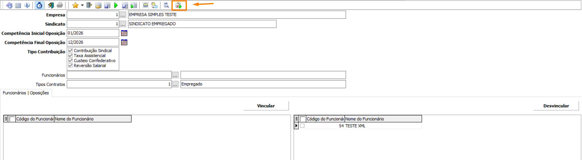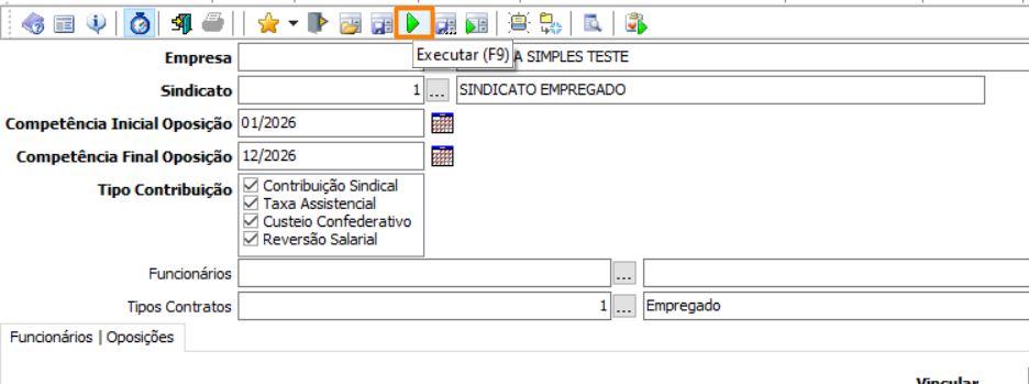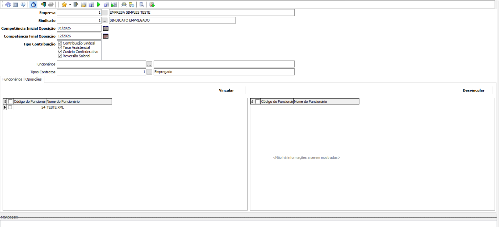 Os trabalhadores só serão exibidos no grid após a execução da busca. A oposição será aplicada aos trabalhadores vinculados, conforme o tipo de contribuição e período informados.