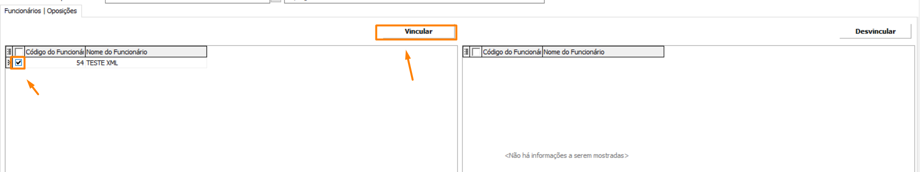 Clique em Vincular para movê-los para o grid da direita.