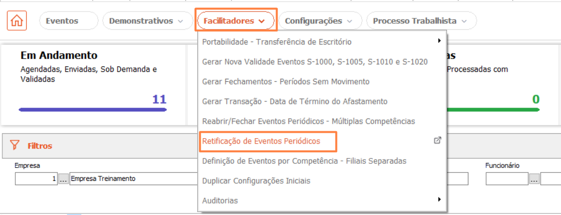 Com ele, você consegue retificar os principais eventos periódicos, tendo o próprio sistema como responsável por reabrir competências, excluir eventos relacionados, gerar novas inclusões e realizar o fechamento, quando necessário.