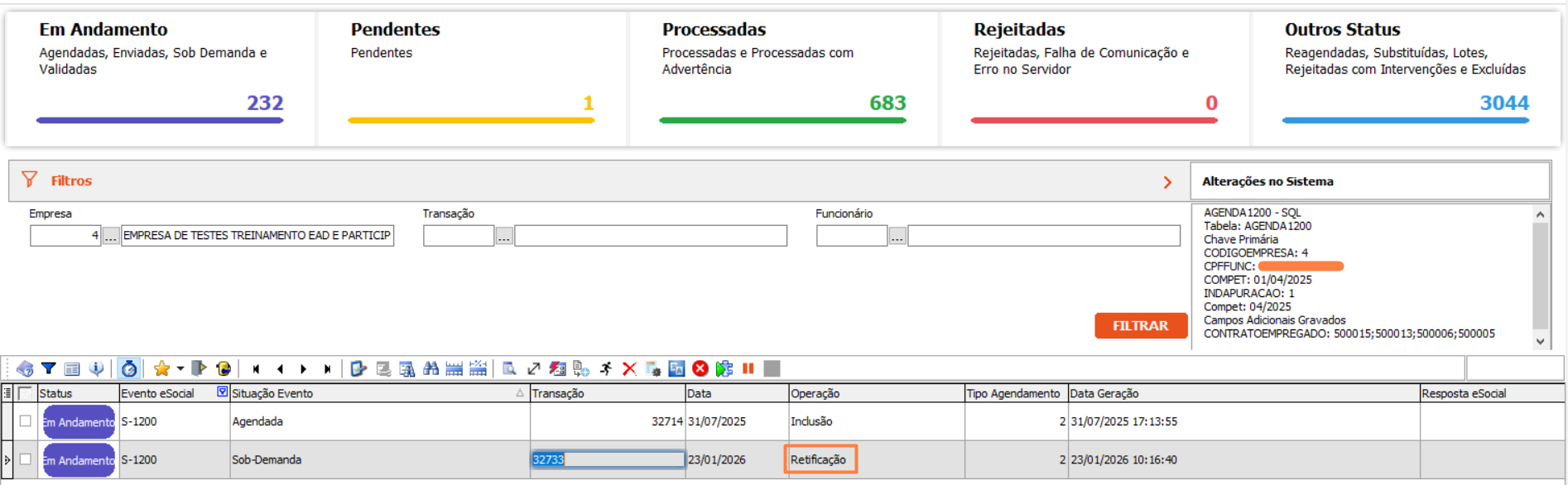 ⚠️Importante: Antes de iniciar a retificação de outra competência, aguarde o processamento completo dos eventos da competência atual, garantindo a correta sequência de envio e evitando inconsistências no eSocial.