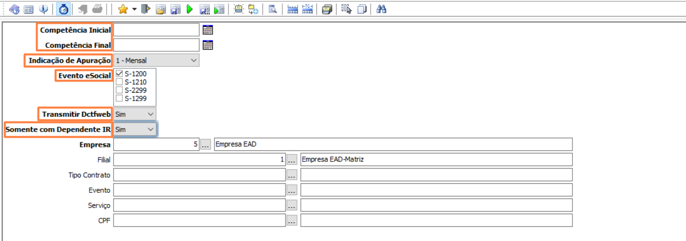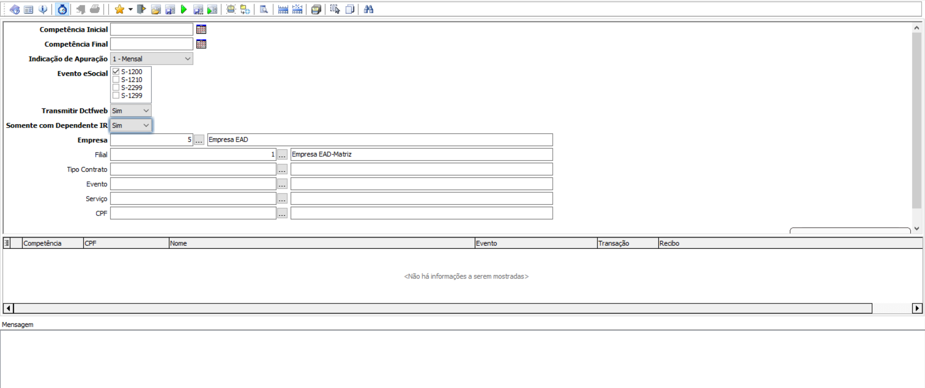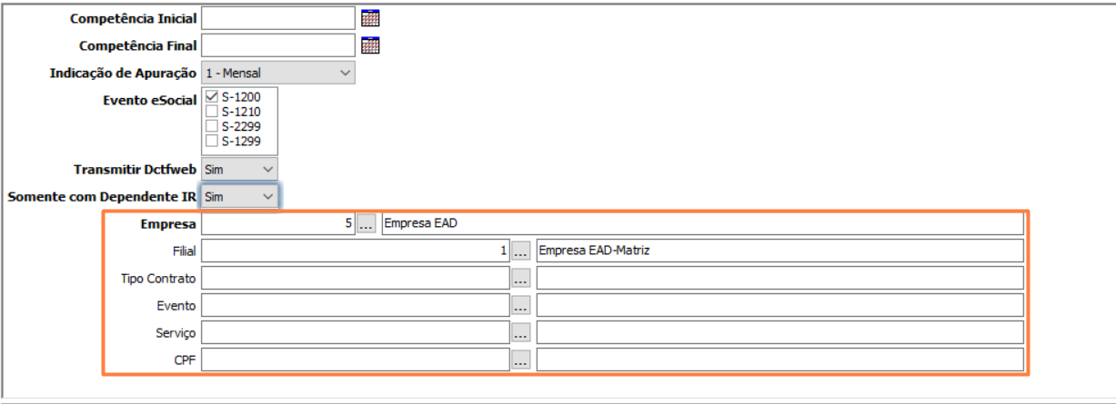 ⚠️Atenção: Ao selecionar o evento S-1299, certifique-se de informar competência inicial e competência final válidas para o fechamento, pois o S-1299 será gerado para todas as competências compreendidas no período informado.