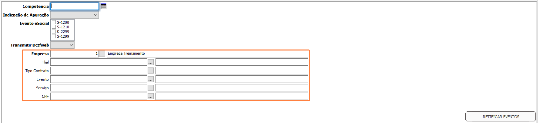 Filial: Opcional. Utilize quando desejar limitar a retificação a uma filial específica.