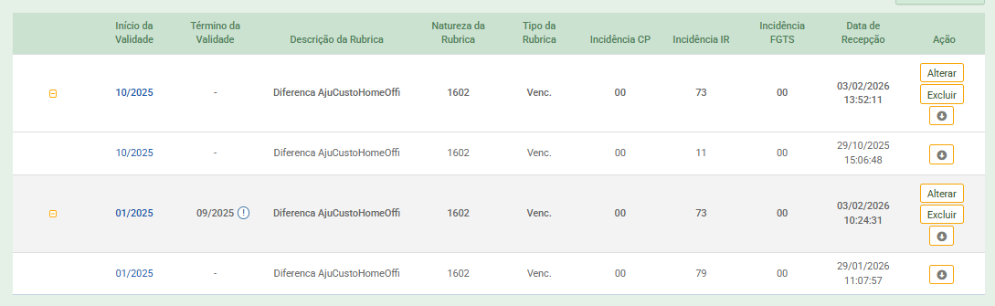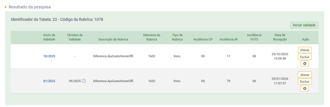 Nessa situação, é necessário atualizar a incidência da rubrica, respeitando a data de validade disponível no eSocial.
