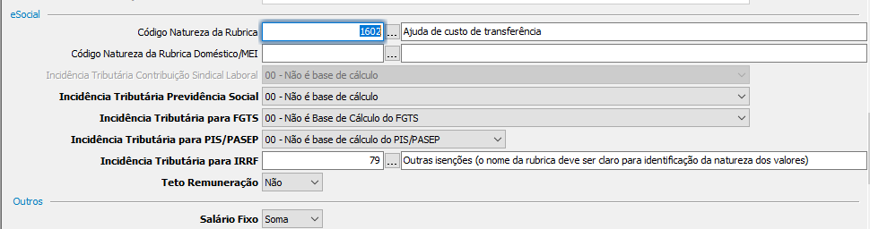 Contudo, conforme definição do cliente, esse evento deveria ser classificado como Ajuda de Custo, cuja incidência correta é 73.