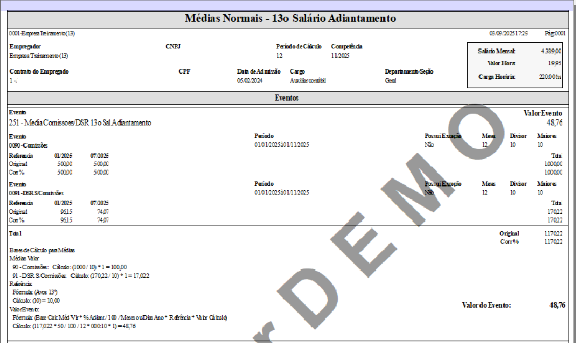 Meses: Determine o número de meses para apuração da média de horas extras para pagamento de 13º salário, indenizações, provisões.