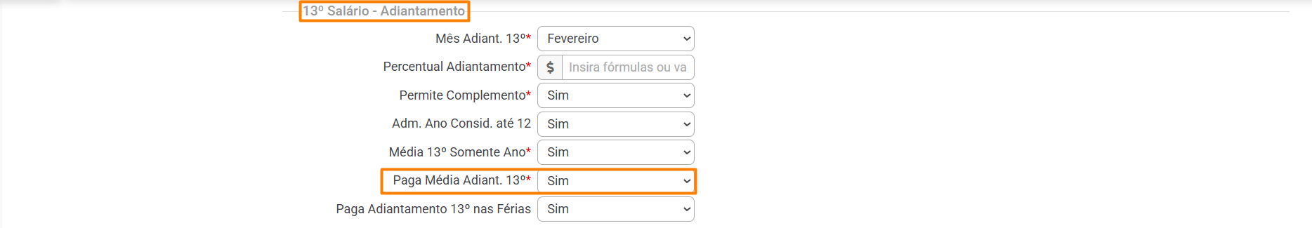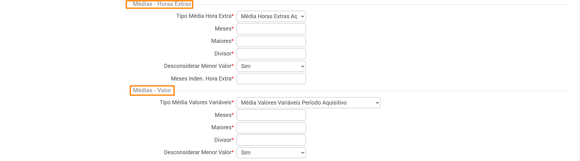Divisor: Informar o número divisor de meses para apuração da média de horas extras.Ex.: Determinado Sindicato prevê que o pagamento da média de horas extras deverá considerar nos últimos 12 meses os 06 maiores números de horas extras realizados para apuração da média. Neste caso devemos informar neste campo o número 06.