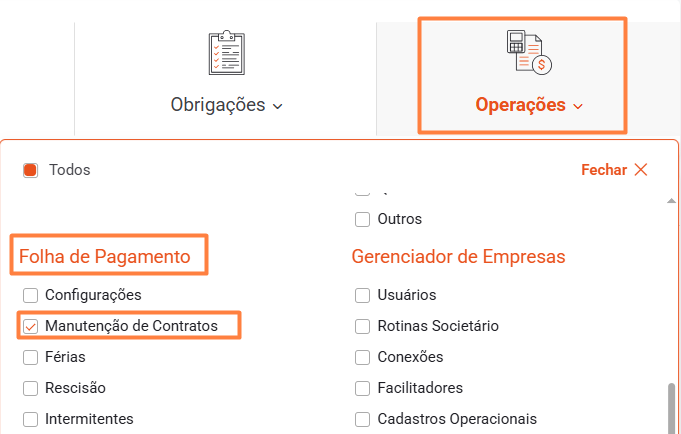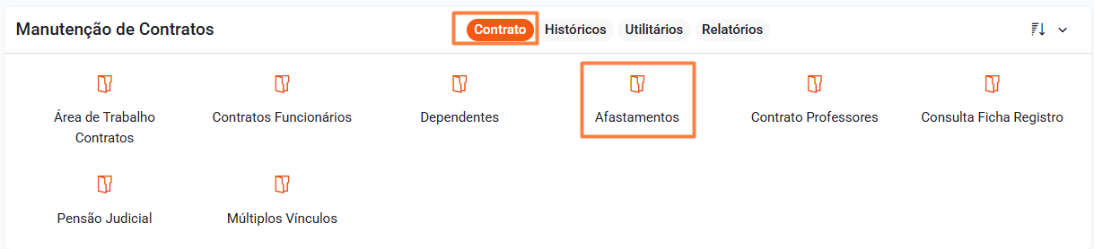 Operações > Folha de Pagamento - Manutenção de contratos > Contrato - Afastamentos