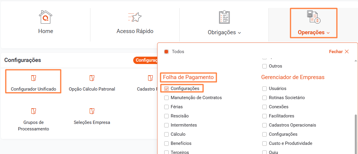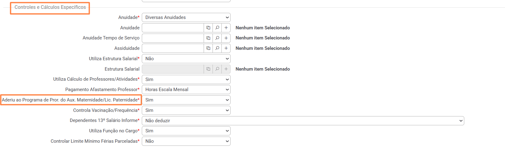 Acesse o Menu: Operações > Folha de Pagamento - Configurações > Configurador Unificado na aba Empresa, o campo Aderiu ao Programa de Pror. Do Auxílio Maternidade/ Paternidade, deve estar preenchido como SIM.