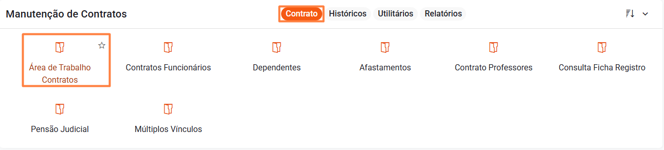 O usuário que desejar realizar o Cadastro Preliminar de Trabalhador com Vínculo (transação S-2190) ao portal do eSocial, deve utilizar a rotina Operações > Folha de Pagamento - Manutenção de Contratos > Contrato > Área de Trabalho Contratos.