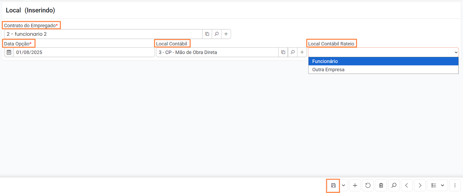 Para alterar o Local Contábil de um funcionário, siga os passos a seguir:
