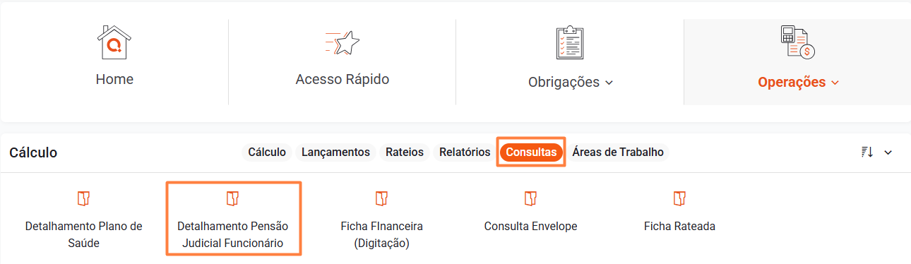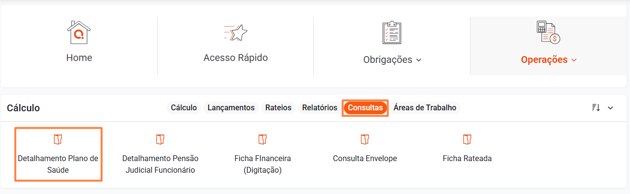 Para verificar o detalhamento acesse Operações > Folha de Pagamento - Cálculo > Consultas > Detalhamento de Pensão Judicial Funcionário e Detalhamento de Plano de Saúde.