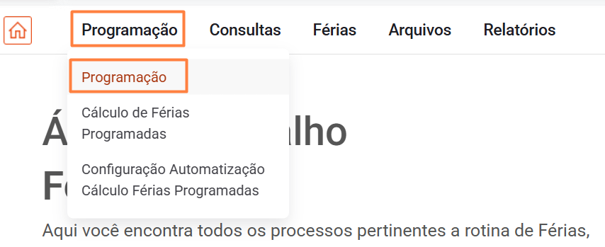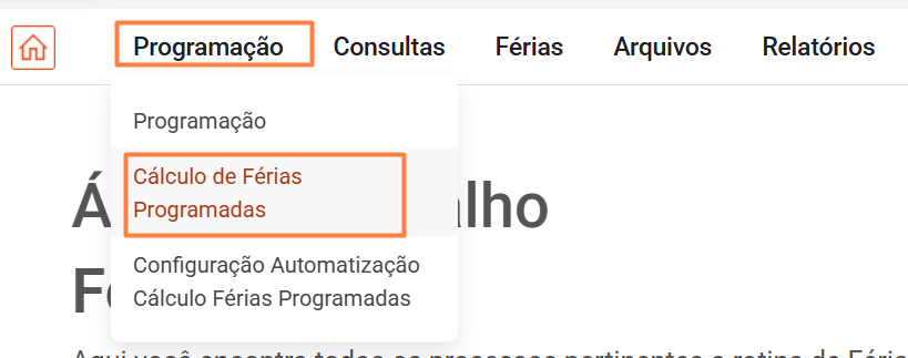 Acessar o menu: Áreas de Trabalho de Férias > Programação > Cálculo de Férias Programadas.