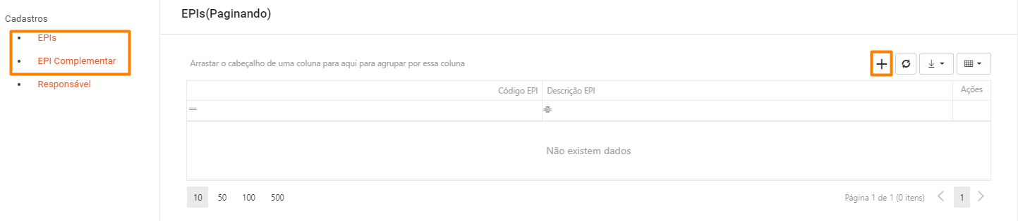 Código EPI: Código sequencial gerado automaticamente pelo sistema.