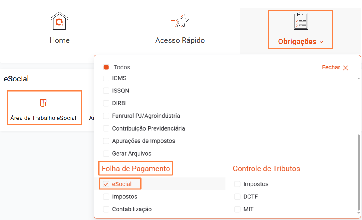 Acesse a rotina através do menu: Obrigações > eSocial > Área de Trabalho eSocial.
