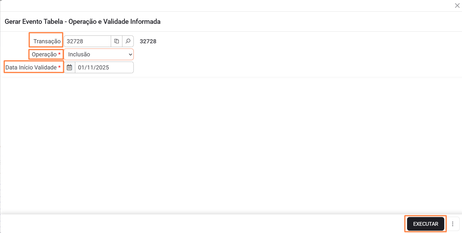 ⚠️Importante: O evento deve estar com o status “Em andamento” com Situação do Evento como “Agendada” para permitir a alteração.