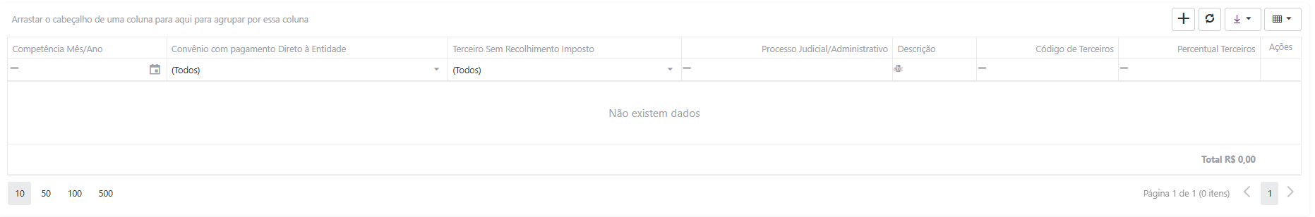 Campo para interromper a geração de valores de códigos de Impostos de Terceiros/Outras Entidades e Fundos, sem a necessidade de Convênio e/ou Processo Judicial, atendendo a metodologia do eSocial.
