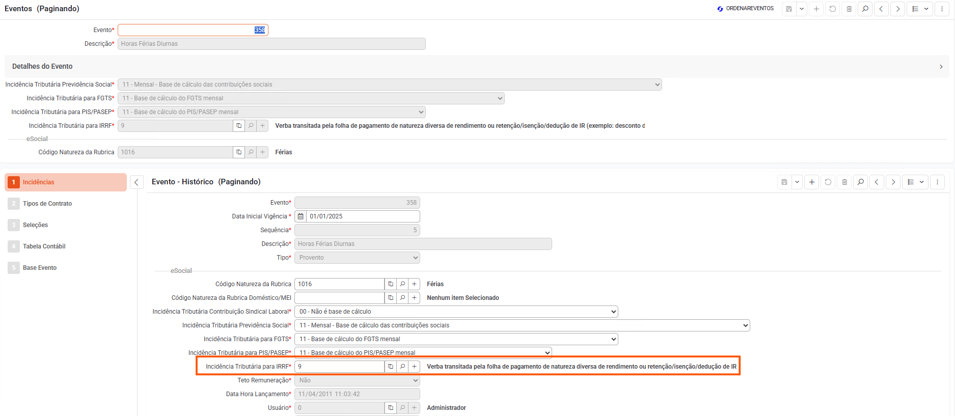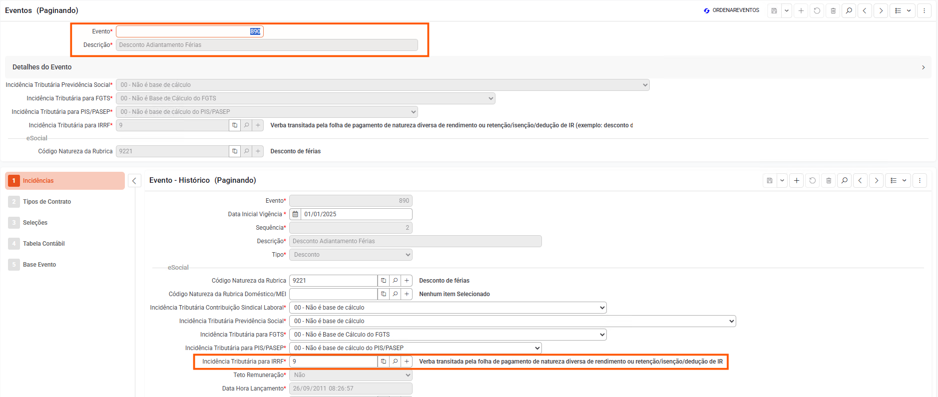Verifique também a incidência dos eventos de provisão relacionados às férias: