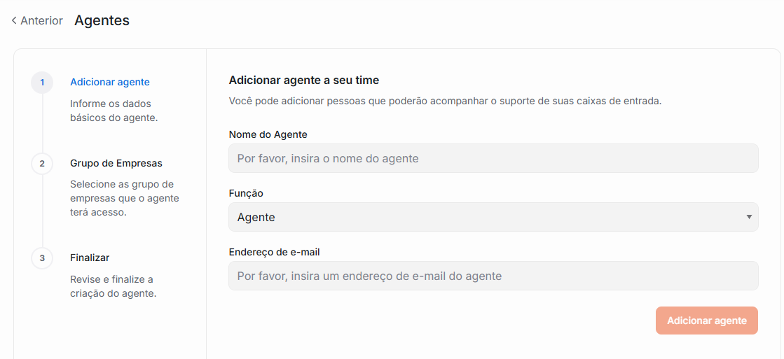 1. Acesse o menu Configurações > Agentes > Adicionar Agente