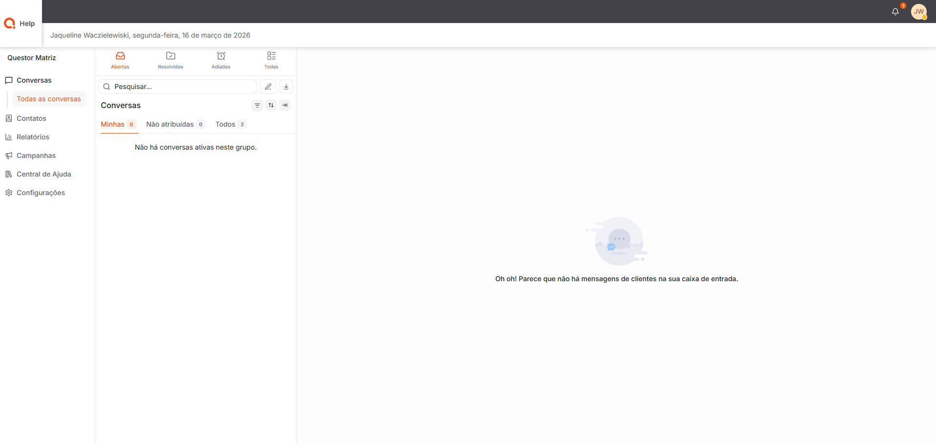 Todas as Conversas: Exibe todas as conversas registradas no sistema, independentemente do status, time ou canal de atendimento.