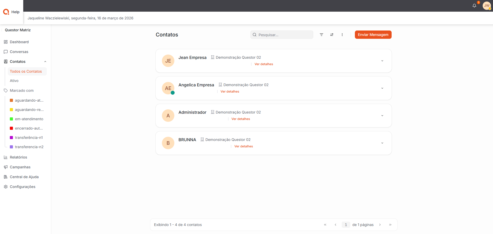 Menções: Exibe apenas as conversas em que o usuário logadofoi mencionado, facilitando a identificação de atendimentos que requerem sua atenção.