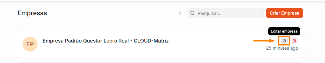 2. Clique no botão Editar Empresas, caracterizado pelo ícone de “engrenagem”.