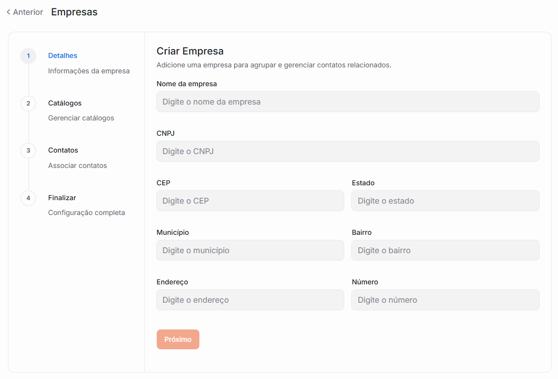 Siga os passos abaixo para cadastrar uma nova empresa.