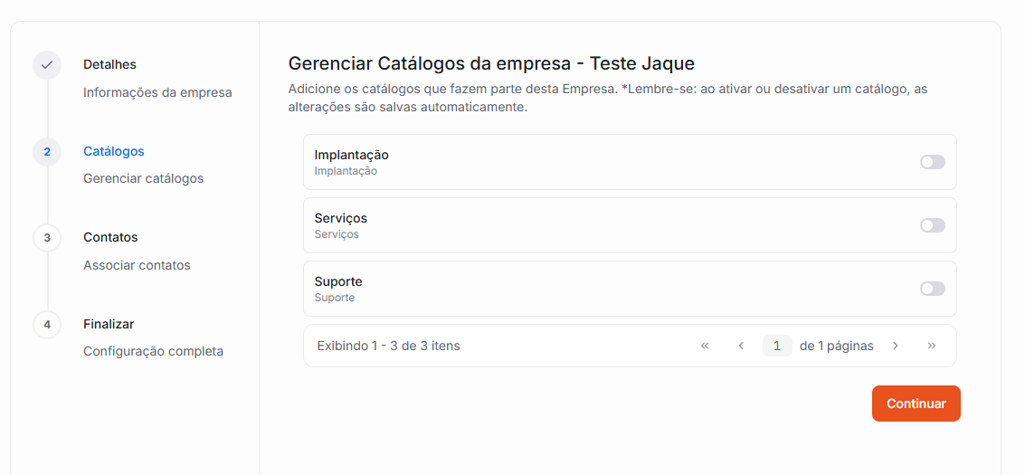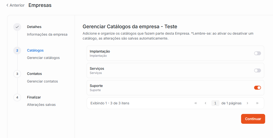 Após selecionar os catálogos desejados clique em Continuar.