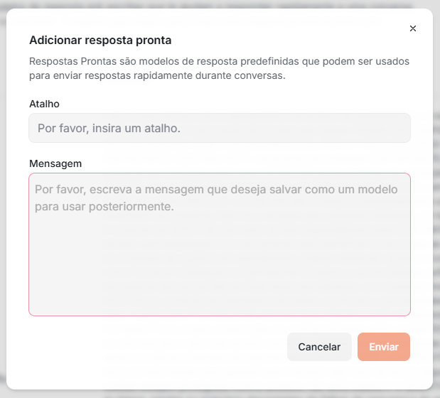Siga os passos abaixo para cadastrar uma Resposta Pronta.