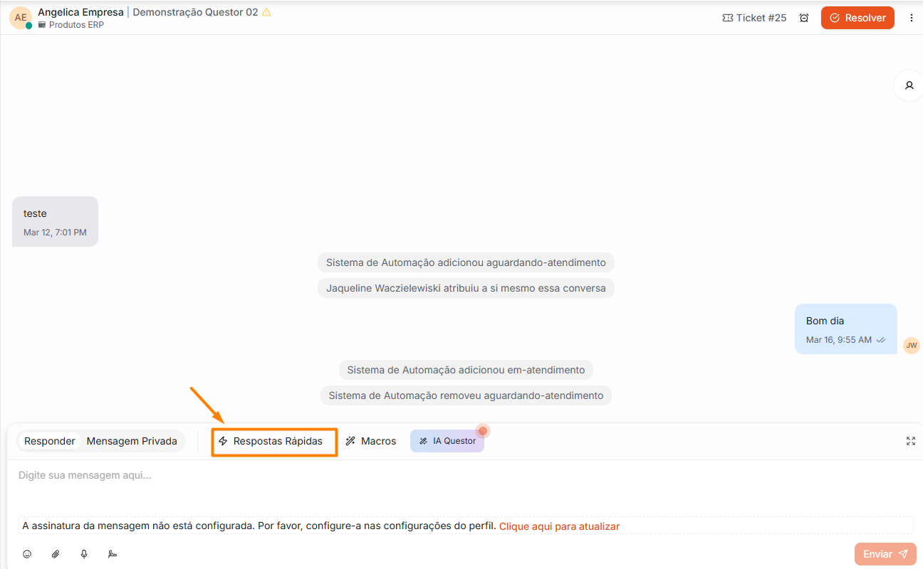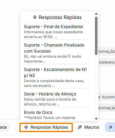 2. Clique no botão Respostas Rápidas.