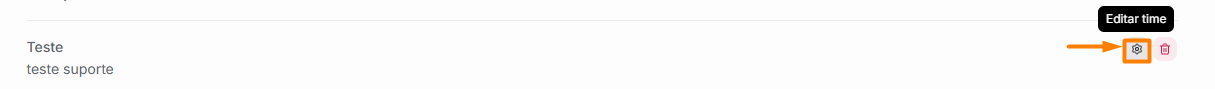 2. Localize o cadastro desejado e clique no botão Editar Time, caracterizado pelo ícone de “engrenagem”.