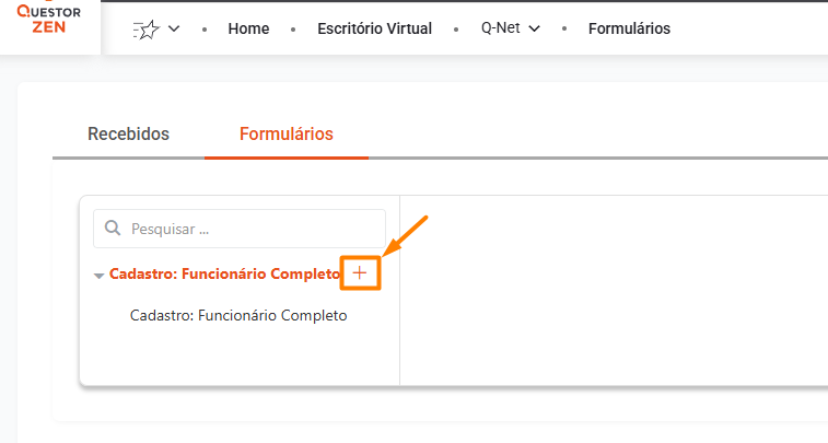 Ao acessar a aba “Formulários”, clique no sinal de “+”. Será aberta a tela para seleção dos formulários.