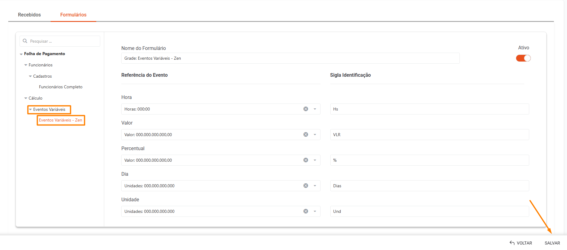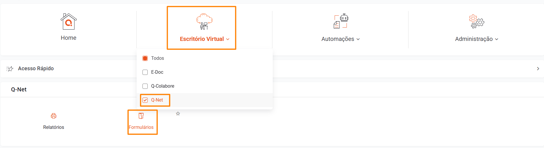 Para configurar o tipo de documento de Eventos Variáveis, acesse: Escritório Virtual > Q-Net > Formulários.