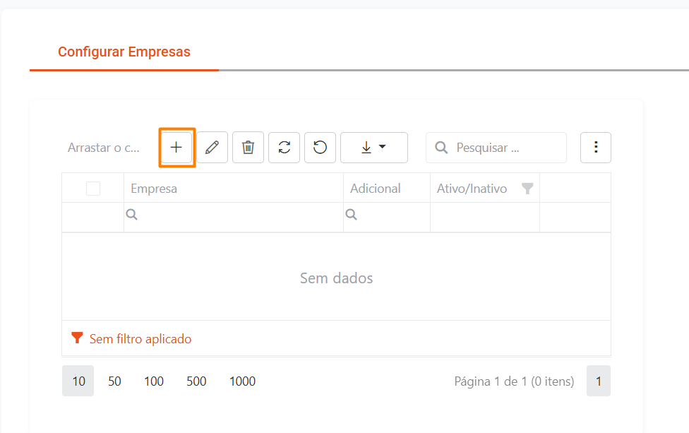 Para configurar as empresas, clique em + (Inserir).