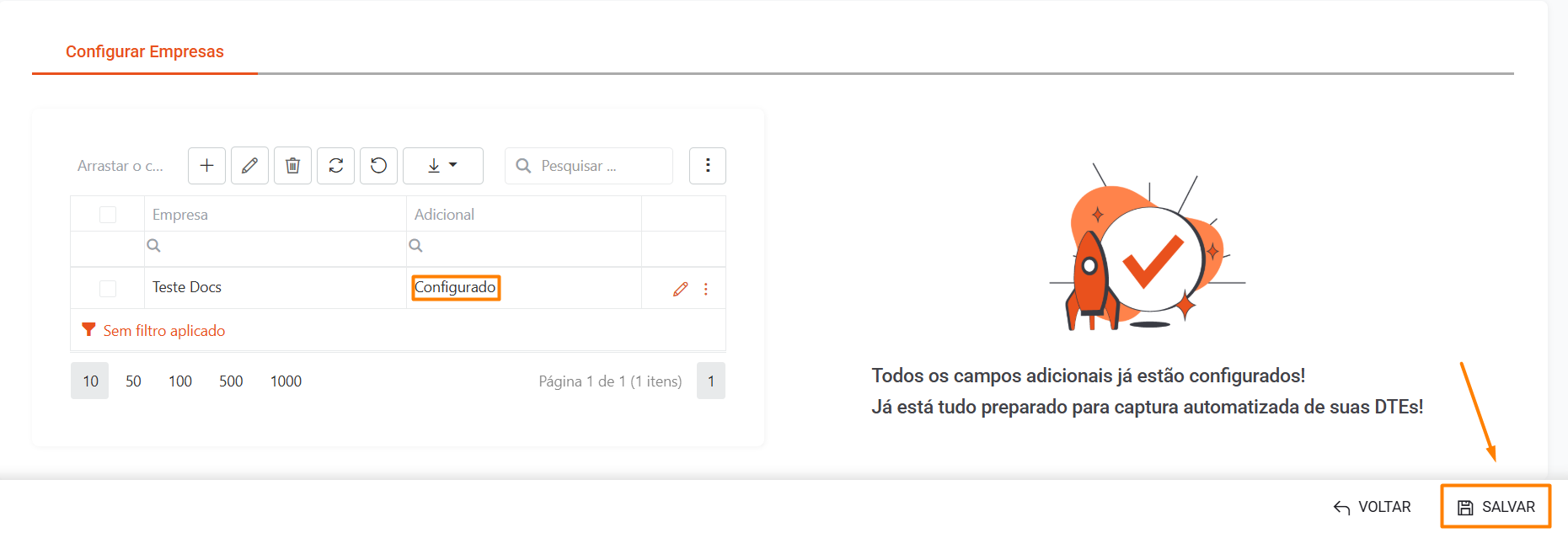 Após concluir a configuração das empresas, clique em Salvar.