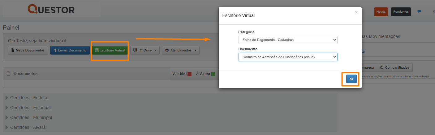 Escolha a categoria e o documento a ser preenchido e clique em OK.