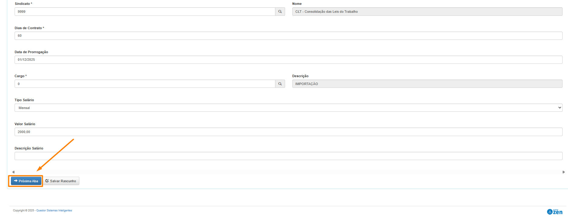 Você será direcionado para a tela de cadastros. Preencha todos os campos obrigatórios e clique em "Próxima Aba".
