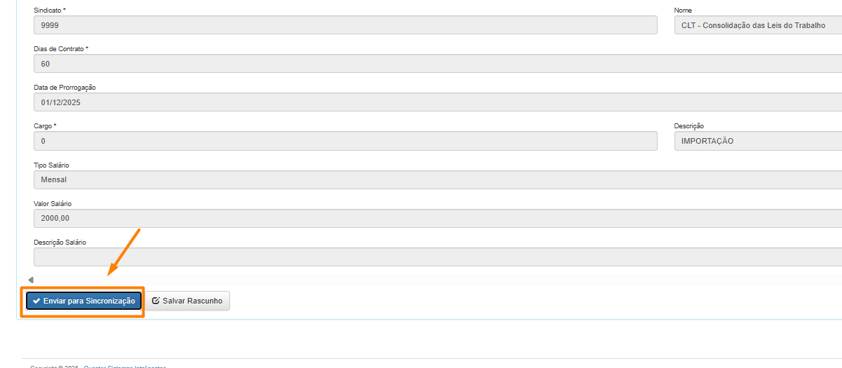 Na tela de visualização, confira os dados inseridos e clique em "Enviar para Sincronização".