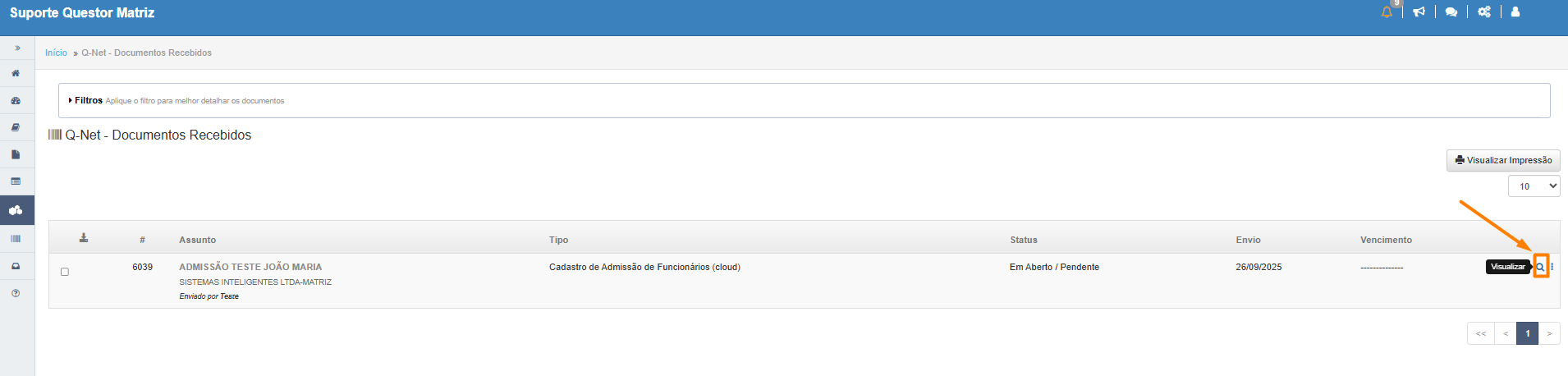 Para visualizar a admissão enviada, clique no botão Visualizar.