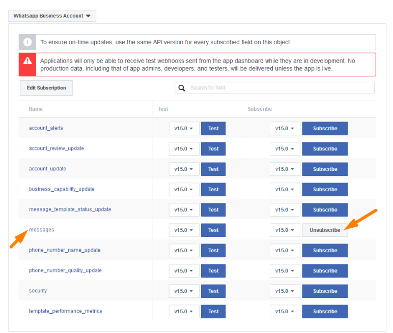 Em seguida, localize a linha "Message" e clique em Subscribe.